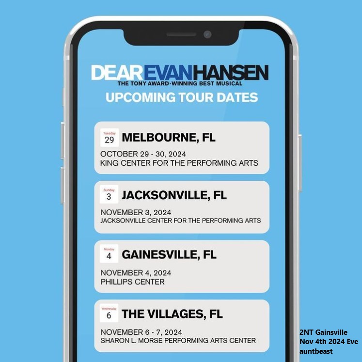 Dear Evan Hansen | 2nd US National Tour, Sharon L. Morse PAC, The Villages, FL | November 6, 2024 Evening | auntbeast’s master | Audio